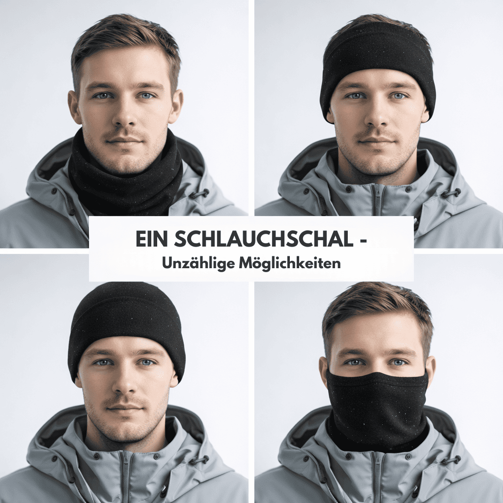 Der Schlauchschal lässt sich vielseitig nutzen – z. B. als Halstuch, Stirnband, Maske oder Mütze. So bist du für unterschiedliche Wetterbedingungen bestens gerüstet.