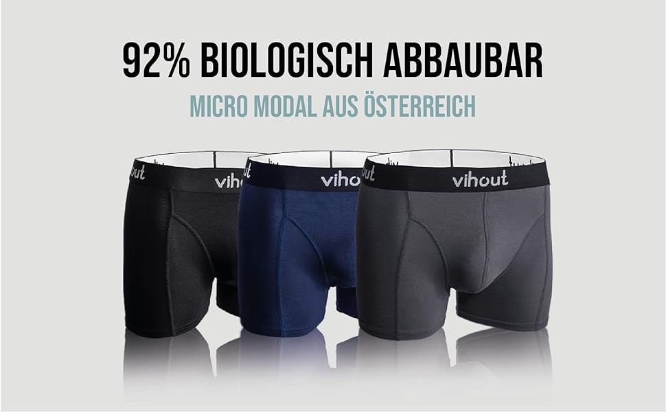 Für Vihout wird ausschließlich Micro Modal aus nachhaltigen, zertifizierten Buchenwäldern in Österreich verwendet. Die Faser ist 92 % biologisch abbaubar und wird besonders ressourcenschonend hergestellt. So trägst du nicht nur erstklassige Unterwäsche, sondern unterstützt gleichzeitig eine umweltbewusste und nachhaltige Produktion.